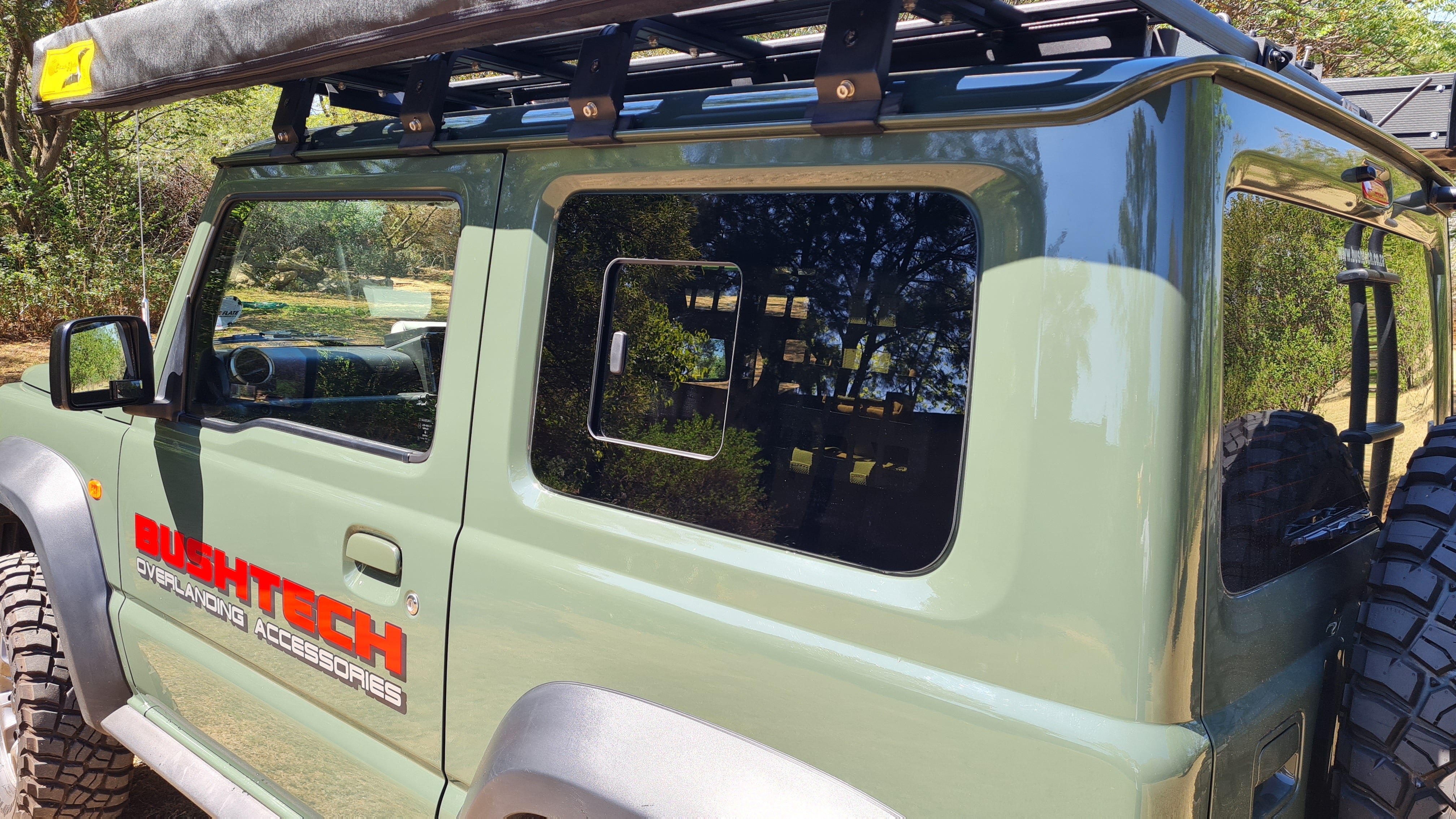 BUSHTECH Rear Sliding Windows - Tinted (Jimny Models 2018-Current GLX & Lite 3-Door)