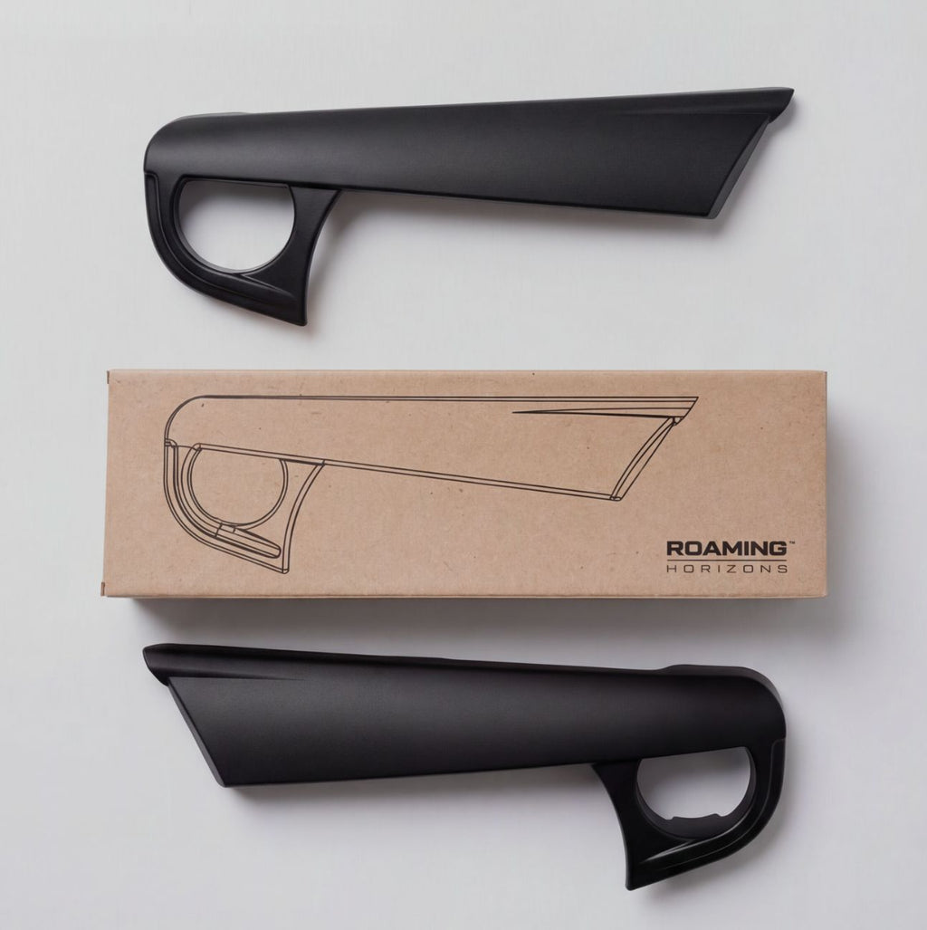 Introducing the Roaming Horizons 'Angry Eye' Panels. Designed for seamless compatibility with the Retro Grille used alongside our Tactical Badge, they add a bold, aggressive edge to your Jimny. Crafted from the same high‑quality, durable polymers as our other Roaming Horizons products, they’re built to endure every adventure while giving your Jimny a distinctive, fierce look.